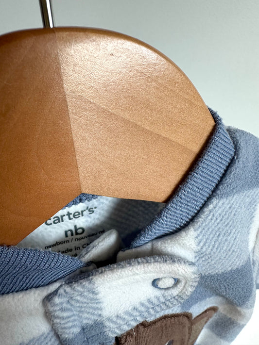 Newborn Fleece Checkered Monkey Sleeper / 0m