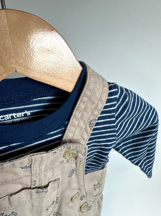 Blue Striped Long Sleeve + Tan Lion Overall Set / 3m