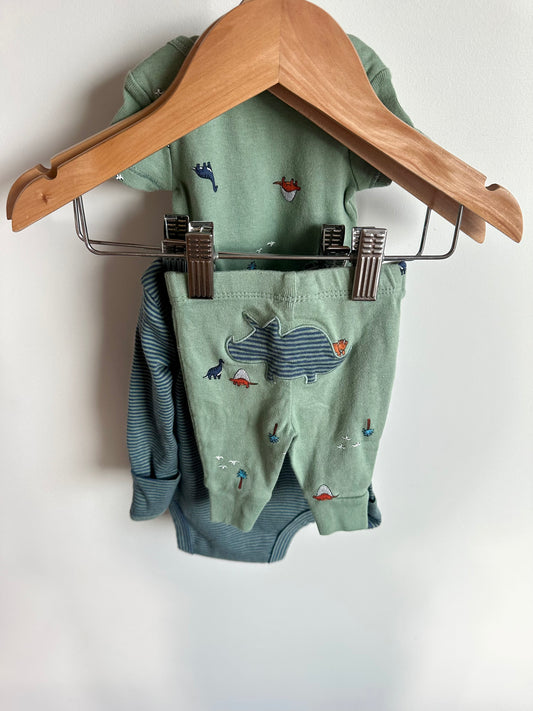 Newborn Set of 2 Dino Bodysuits + Pants Set / 0m