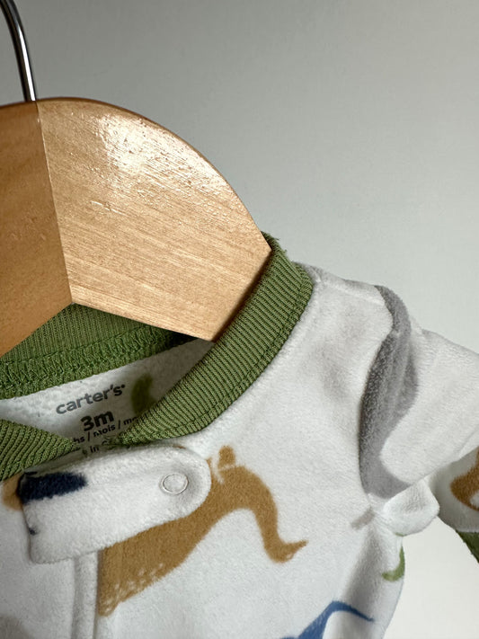 Fleece White Dino Sleeper with Green Collar / 3m