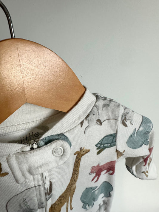 Organic White Animals Zip Sleeper / 3m