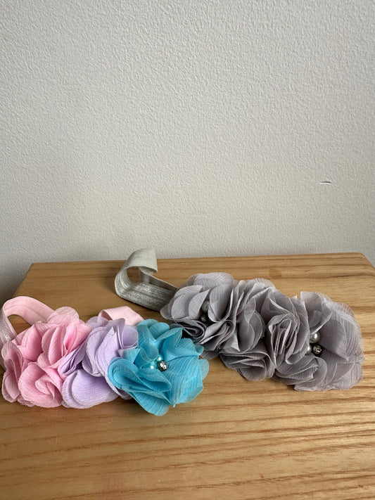 Set of 2 Floral Headbands - Grey + Multicolour / 6-12m