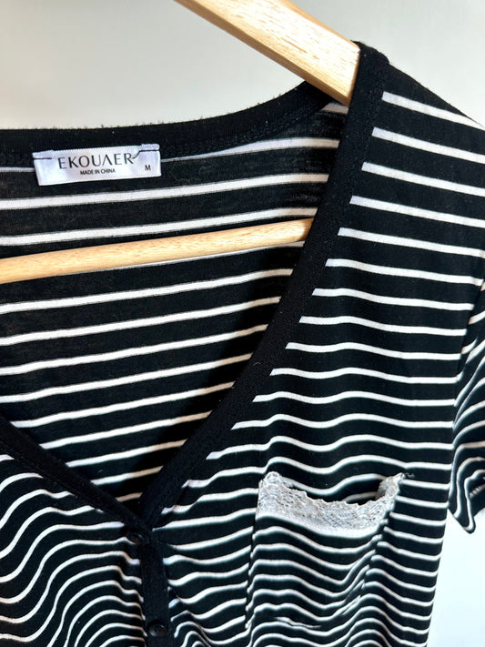 Striped Black + White Long Maternity Top / Large