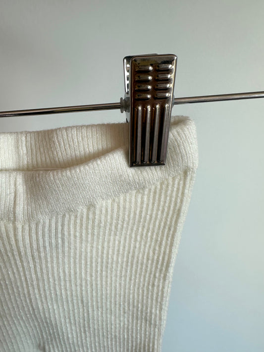Cream Ribbed Leggings / 6-12m