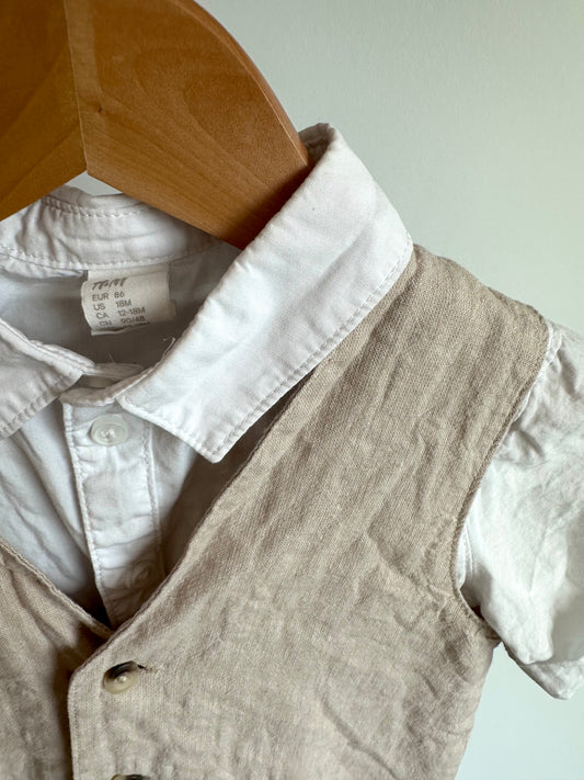 H&M Oat Linen Vest, Collared Shirt + Shorts with Suspenders Set / 12-18m