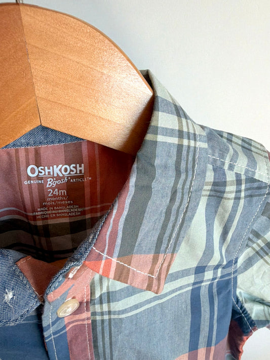 Plaid Blue + Orange Button Up Top (With Tags) / 24m