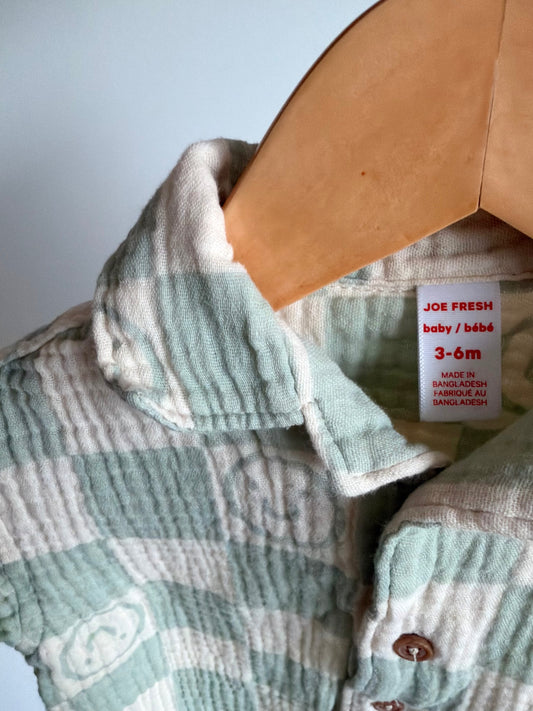Muslin Checkered Smiley T-shirt / 3-6m