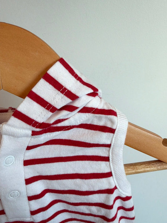 Red Striped Hood Romper / 3-6m