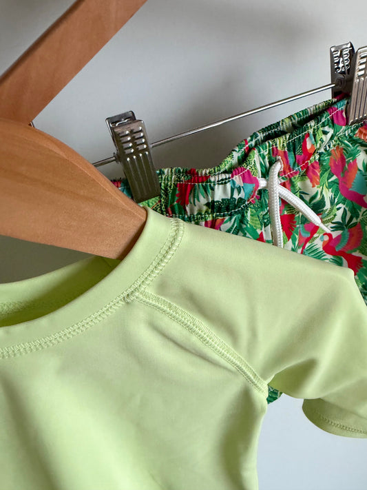 Neon Rash-guard + Parrot Swim Shorts Set / 3-6m