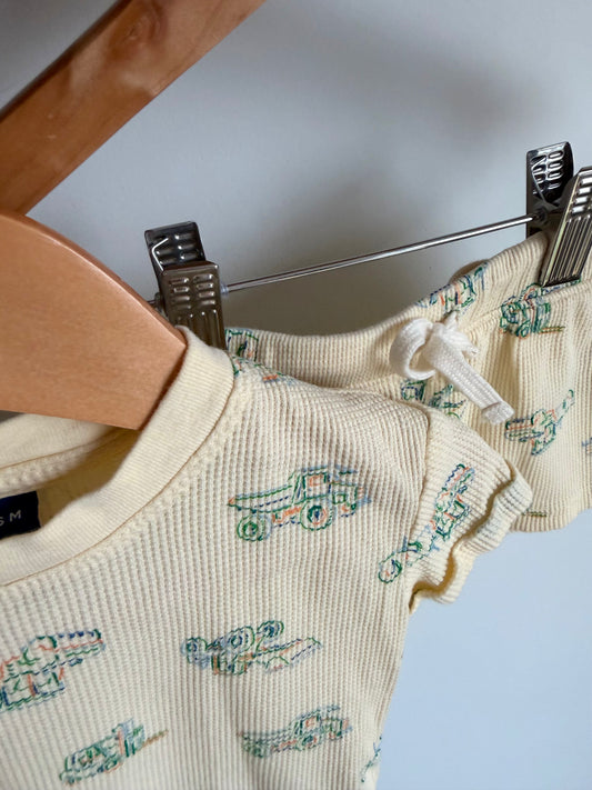 Yellow Waffle Knit Tractor T-shirt + Shorts Set / 3-6m