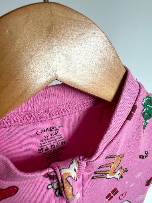 Pink Christmas Footed Sleeper / 12-18m