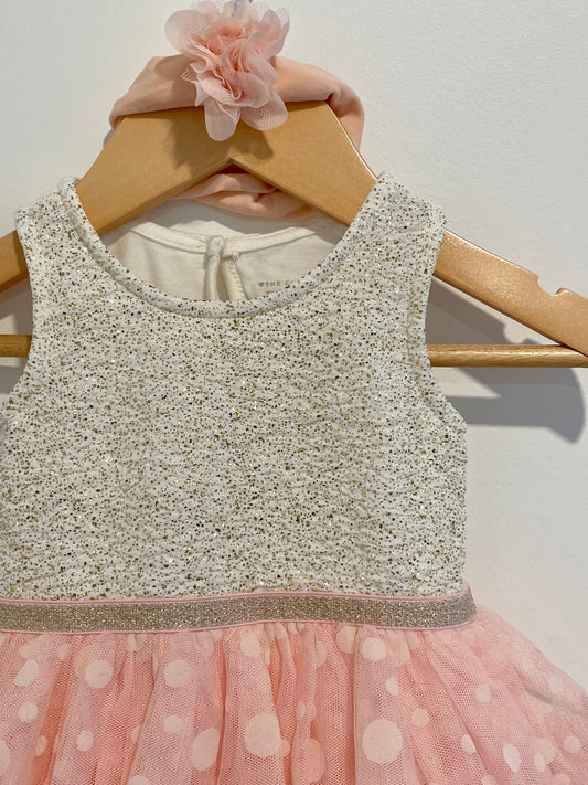 Gold + Pink Tulle Dress Bodysuit + Headband / 3-6m