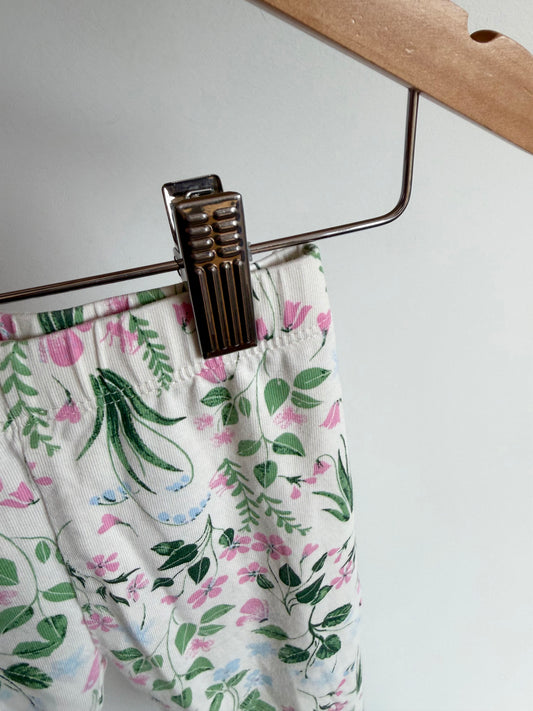 White Floral Green Leaves Leggings / 2-3T