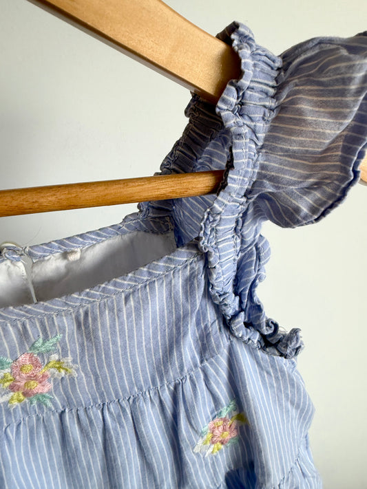 Embroidered Flower Striped Dress / 4-5T