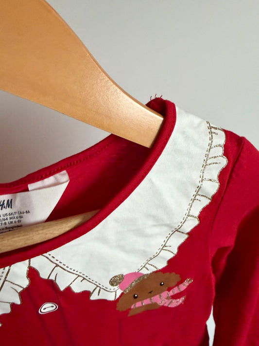 Red Doggie Pocket Dress / 6-8 years