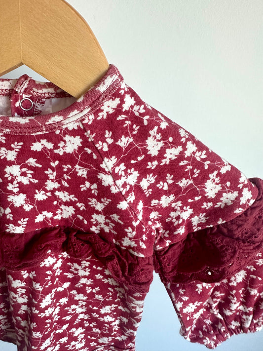 Red Floral Puff Sleeve Bodysuit / 6-9m