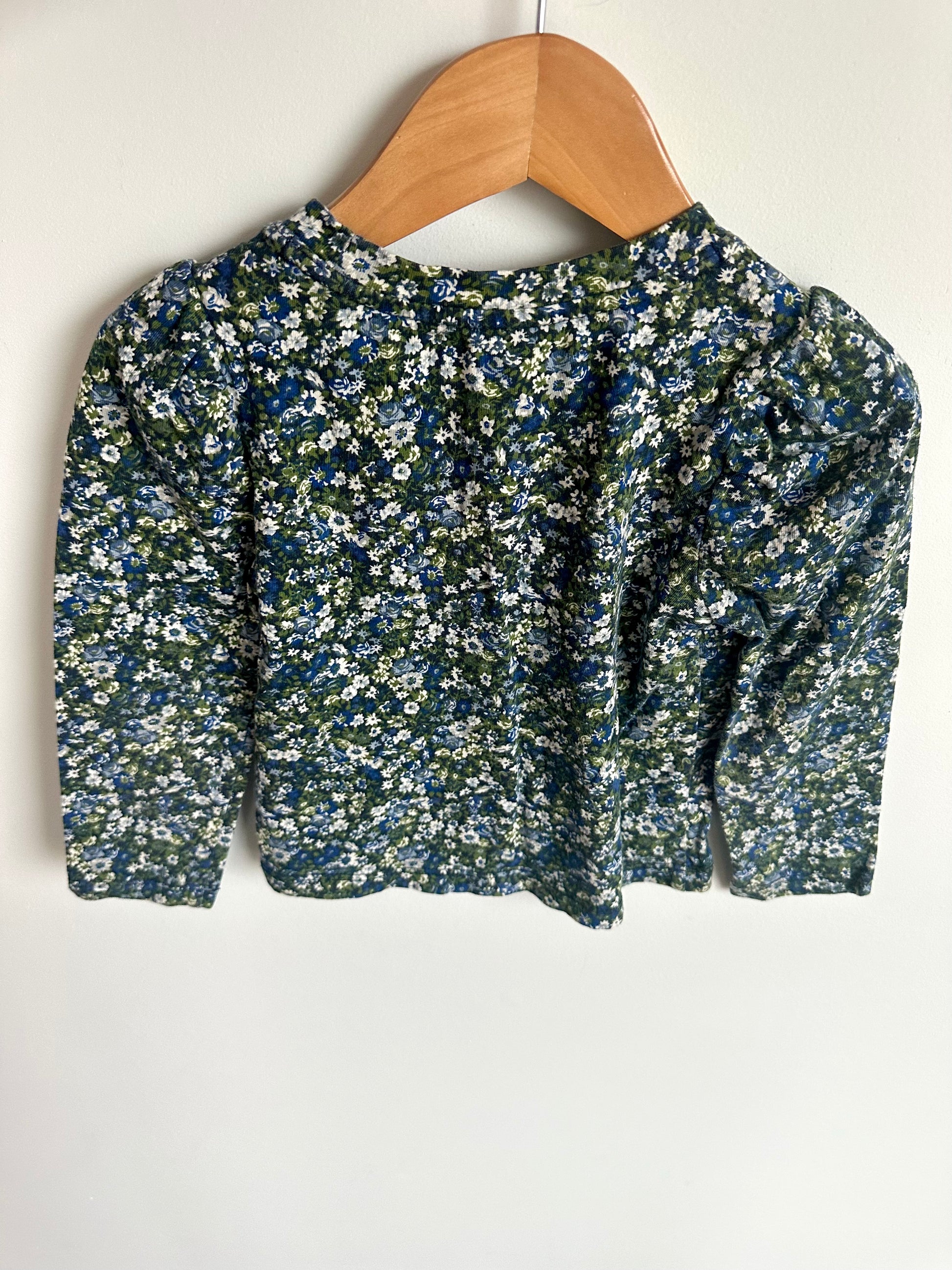 Floral Green Blue Billowy Sleeve Top / 3T