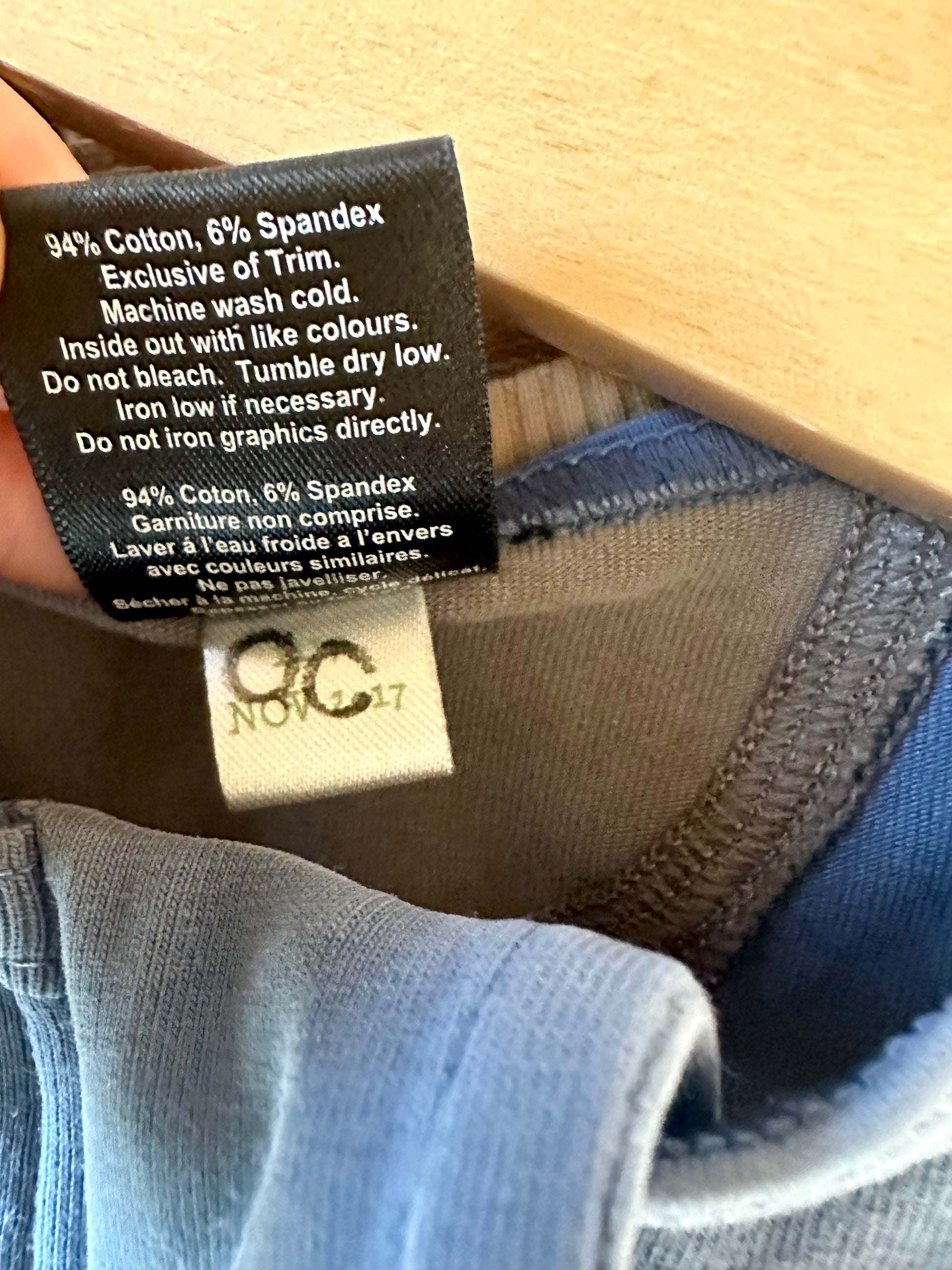 Condition: PLAY - a tiny hole in the front and back and a few stains. Material has just light wash wear.