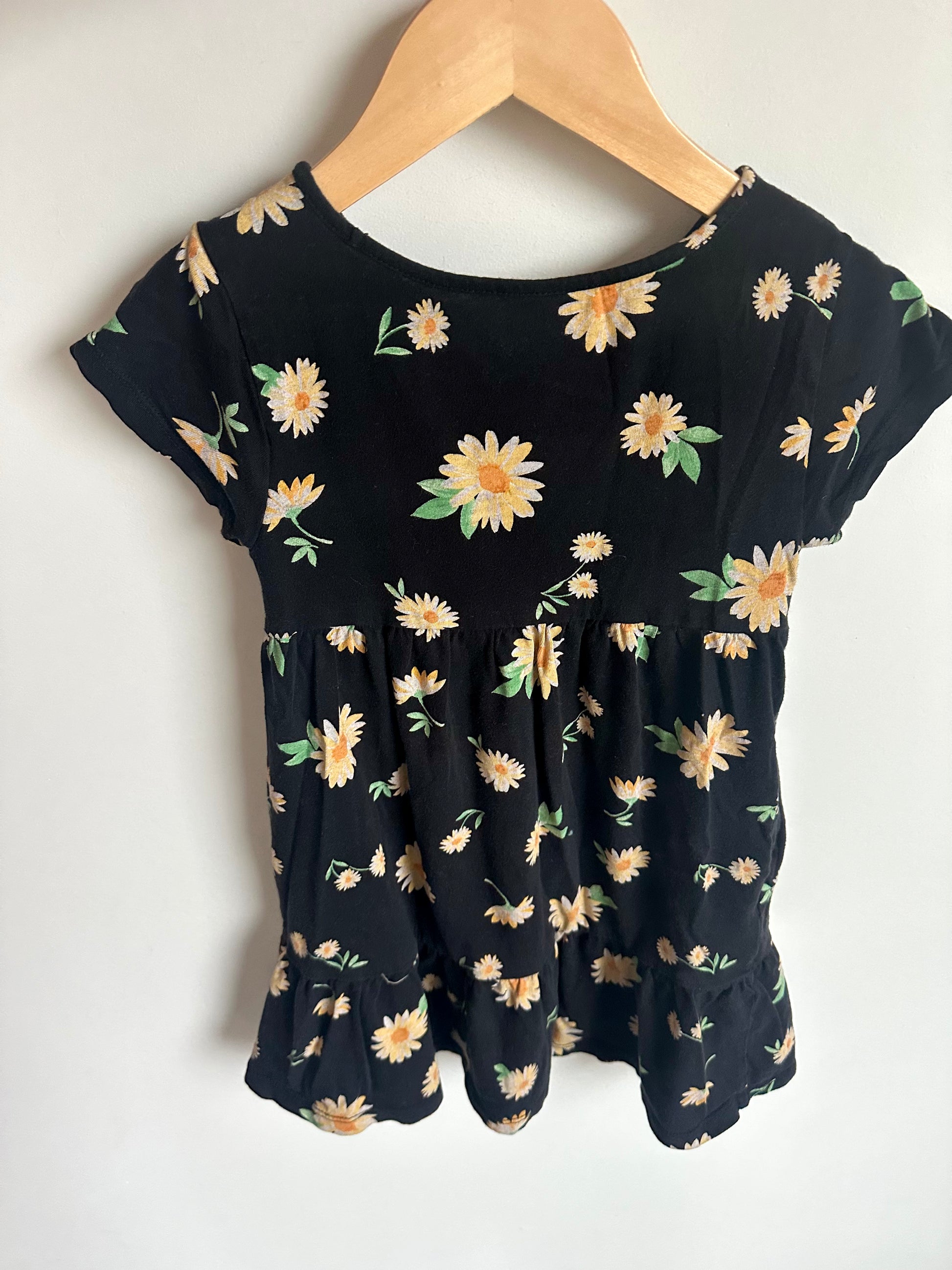 Yellow Flowers Black Pocket Dress / 3T?