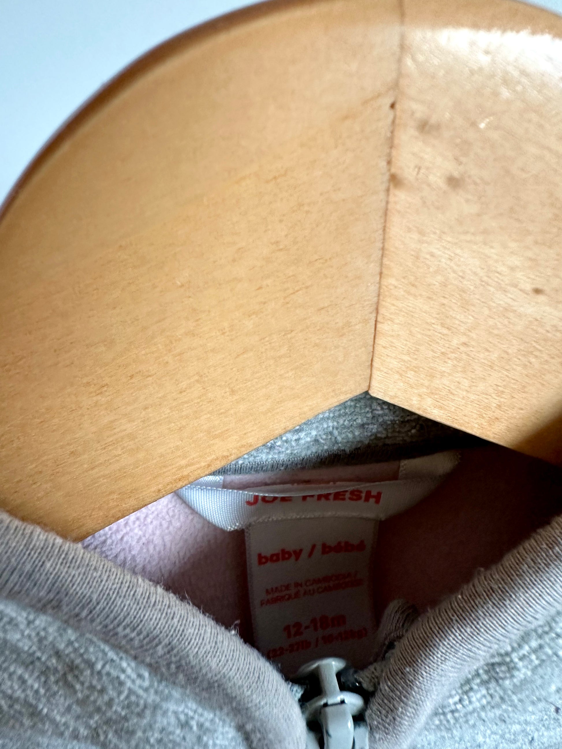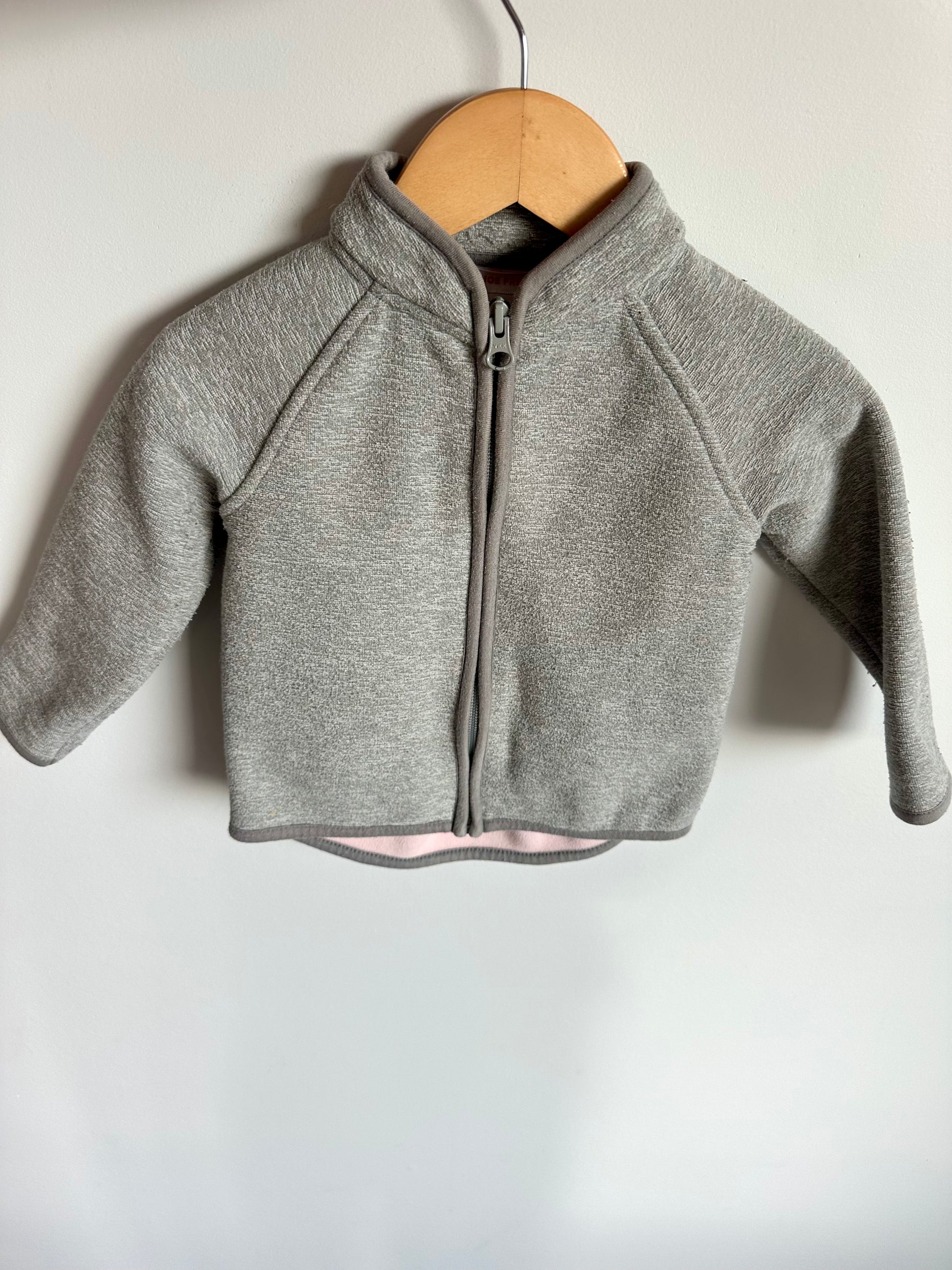 Grey Zipper Sweater with Pink Inside / 12-18m