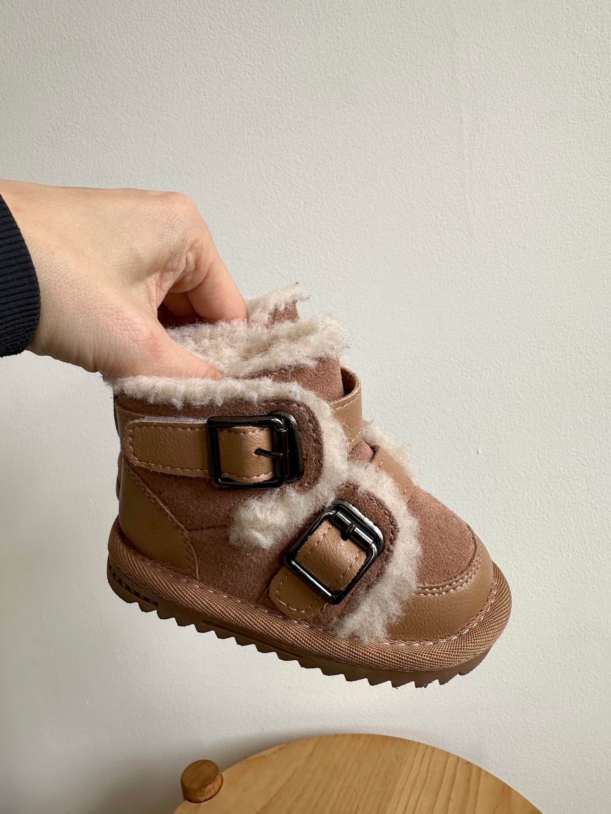 Tan Sherpa Lined Velcro Boots / Size 2 Infant