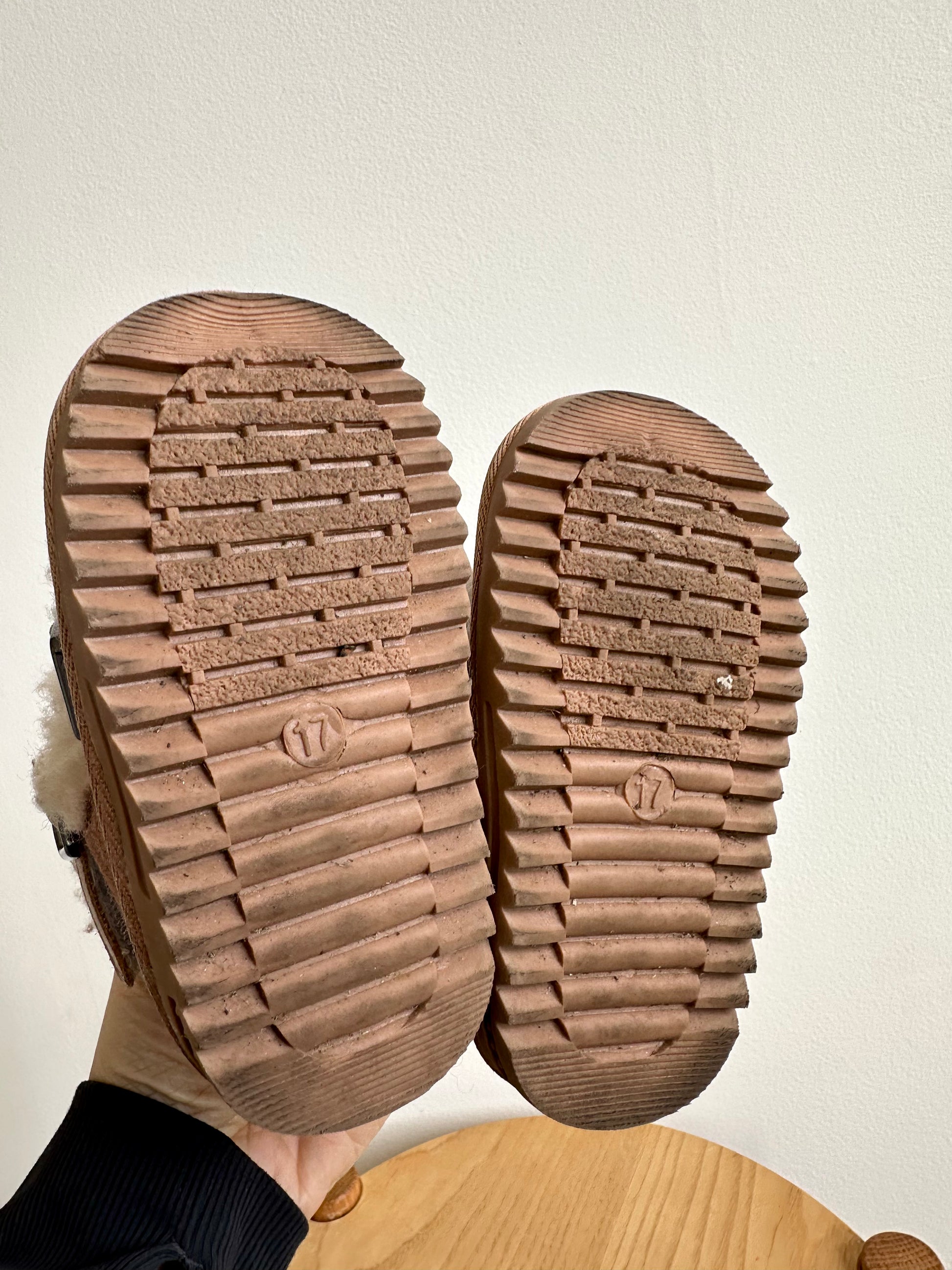 Condition: Good, light wear. Size says 17, which is equivalent to 2-2.5 infant.