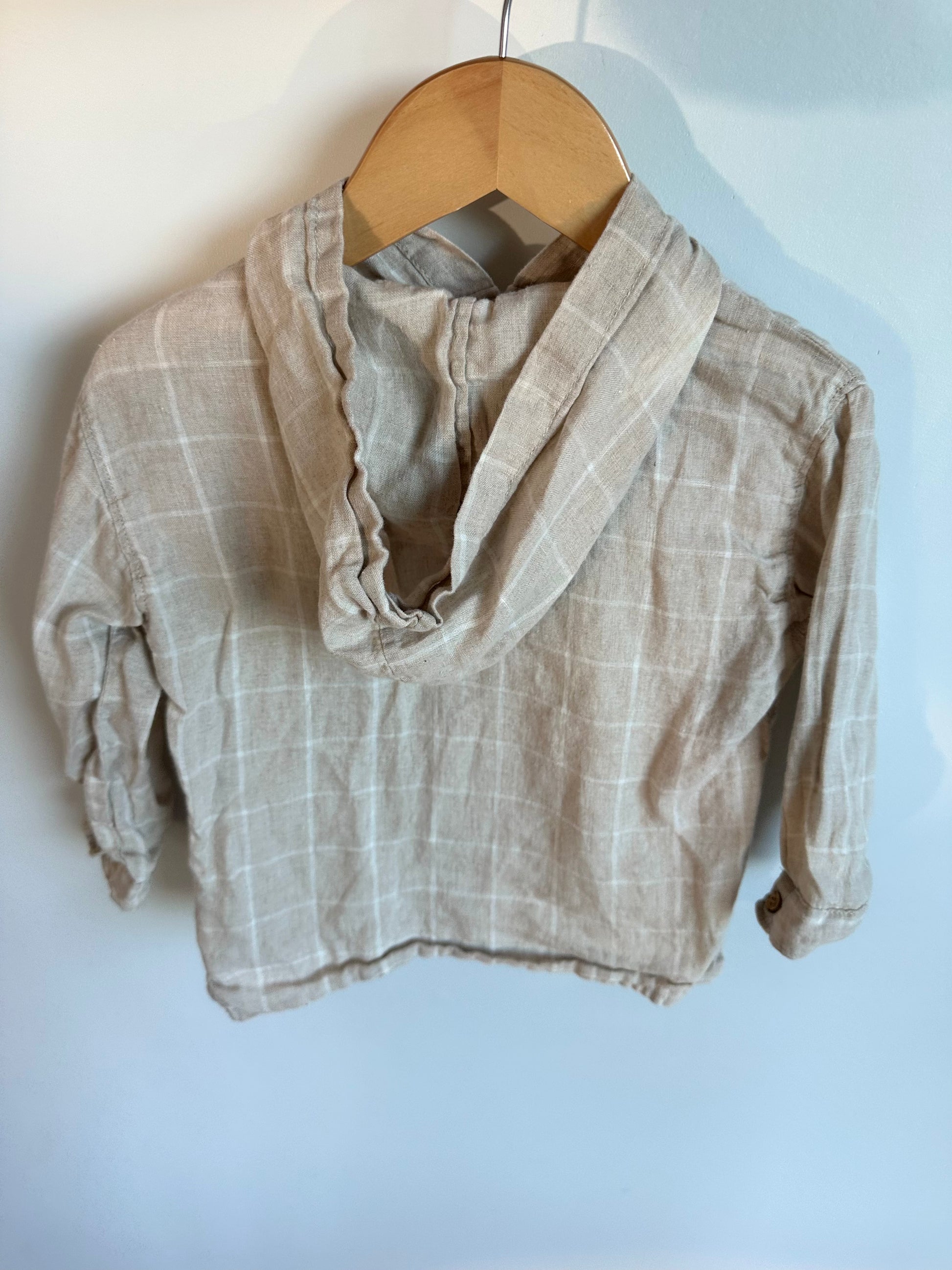 Zara Tan Checkered Hooded Button / 18-24m